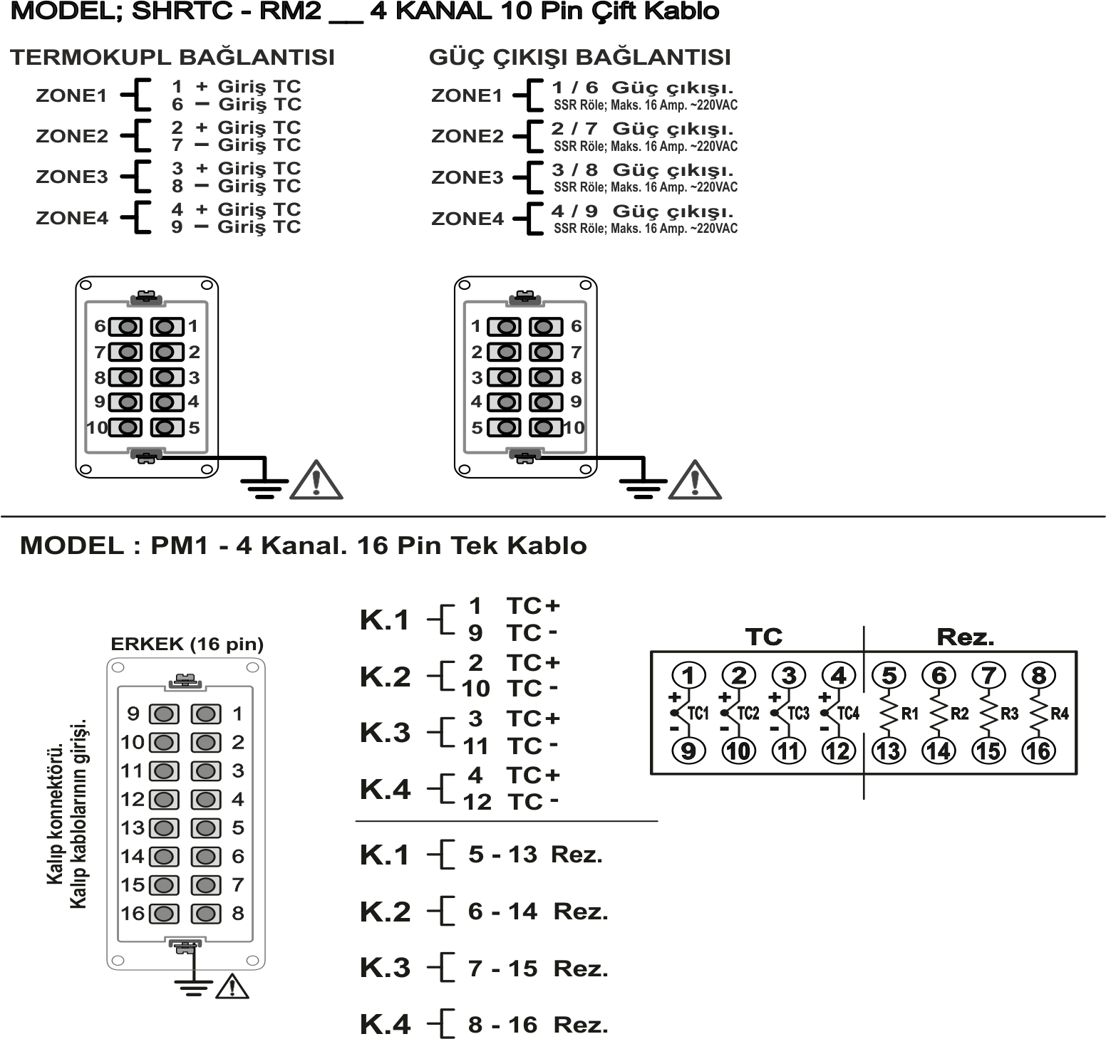- 5 Pinden 48 pine kadar ısı kontrol cihazı ile kalıp arası özel kablolar üretilir.